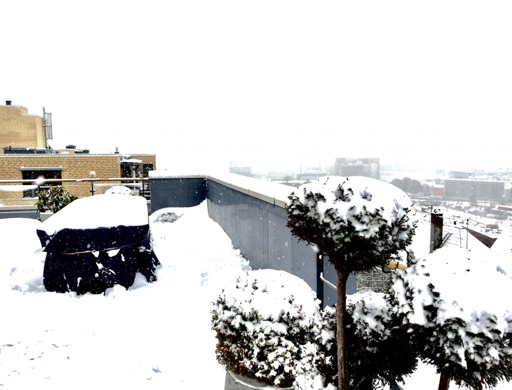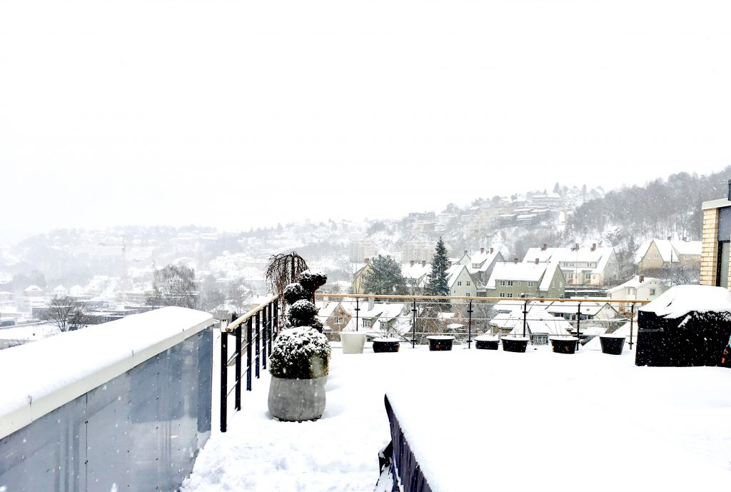Vi har montert rekkverket utenpå de gamle cembritplatene. For å dele opp og lage soner på terrassen, har vi satt opp en levegg. Designet er Intermezzo med Termoask.